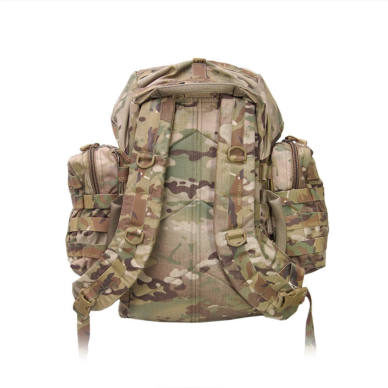 Light Weight Durable Design: 25mm webbing carry handles to both sides and top, external hard attachment point built into the upper rear face with reinforced stitching and V ring hardware. 500 denier milspec nylon construction makes the pack incredibly light weight and durable.
