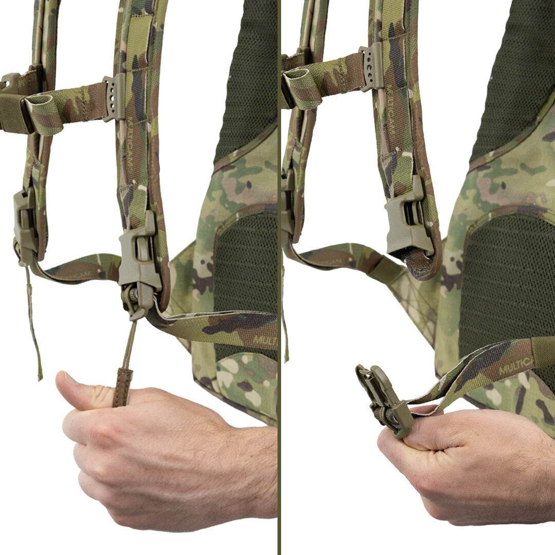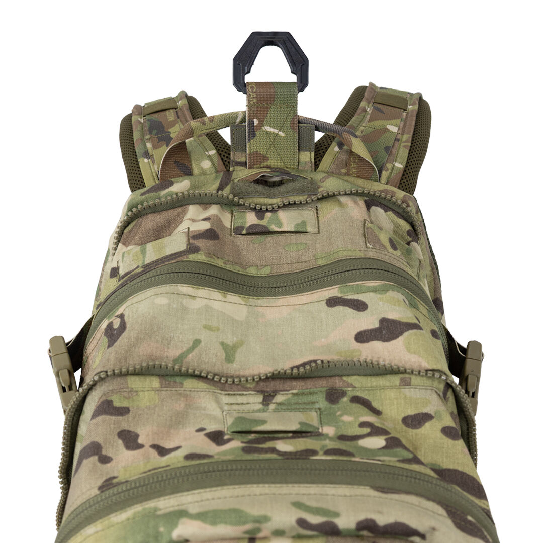 The Med Assault Pack is designed for team specialists who need to carry role specific equipment such as a trauma kit, while offering the option to unzip and access an 18L rear pocket for personal stores, additional kit enhancements, or to perform site exploitation tasks. A 3L admin pocket is positioned at the top of the pack and is sized to accommodate IV bags, MEIs, or other items that need to be accessed quickly while on task.
