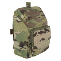 A magnet-secured, forward-opening lid provides quiet, one-handed access to the pouch contents—ideal for observation tasks that require minimal movement. The internal structure is protected by closed cell foam padding, offering shock protection without excess weight or rigidity. The internal layout includes a front admin pouch for storing lens cloths, filters and other admin items.  The compact footprint integrates seamlessly with our chest rig and platforms turning them into a full featured bino-rig.